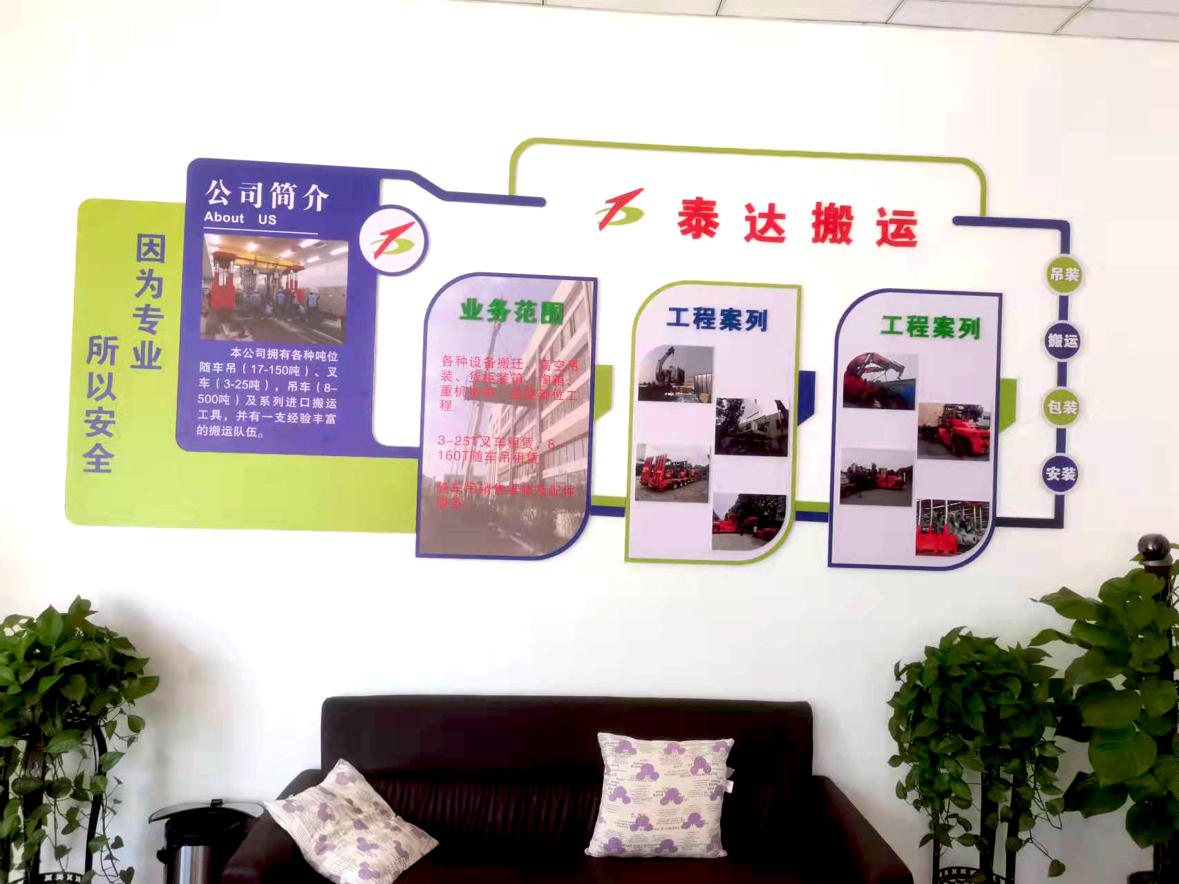 無(wú)錫泰達(dá)搬運(yùn)有限公司是一家集起重、搬運(yùn)、裝卸、定位安裝、運(yùn)輸服務(wù)、機(jī)電安裝及包裝服務(wù)的專(zhuān)業(yè)公司,公司長(zhǎng)期從事各類(lèi)精密機(jī)器設(shè)備及超大、超重設(shè)備的搬運(yùn)、安裝工作,積累了豐富的實(shí)際經(jīng)驗(yàn),能為您解決各類(lèi)起重、搬運(yùn)、安裝的疑難問(wèn)題。公司下設(shè)有市場(chǎng)部、搬運(yùn)部、安裝工程部、包裝部、吊機(jī)制造生產(chǎn)部。現(xiàn)經(jīng)營(yíng)范圍遍及江蘇、浙江、廣東、安徽、山東、上海、天津等地能提供專(zhuān)業(yè)化的服務(wù)!